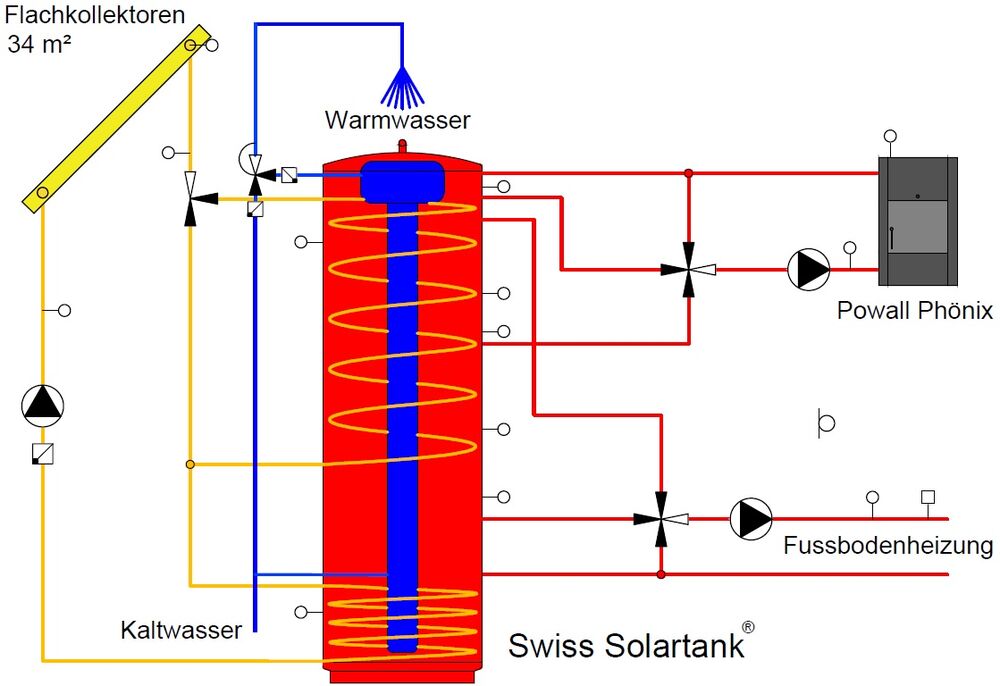 - Speicher: Swiss Solartank, 9400 Liter, inkl. TWW-Speicher Typ Champignon 205 Liter